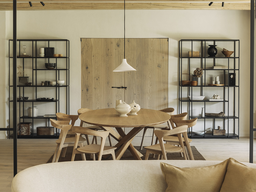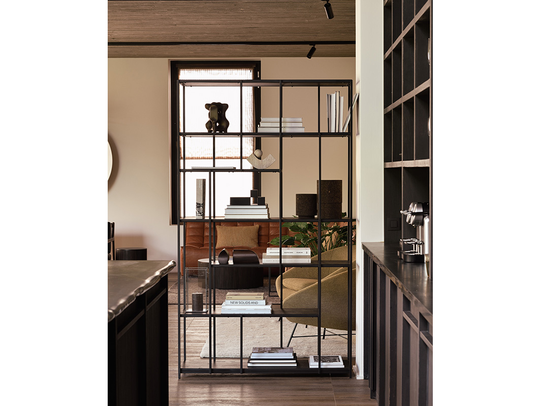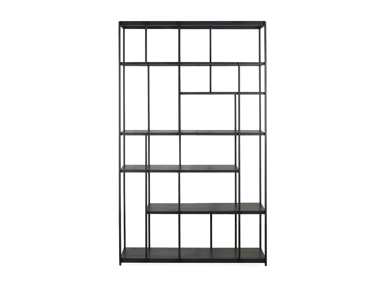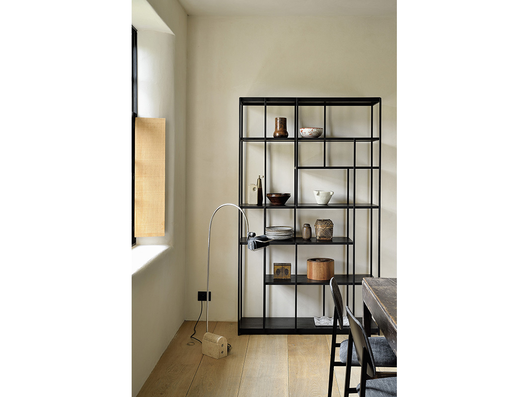 La Librería Studio de Ethnicraft combina una estructura de metal negro con estantes en teca maciza, aportando contraste y ligereza visual.