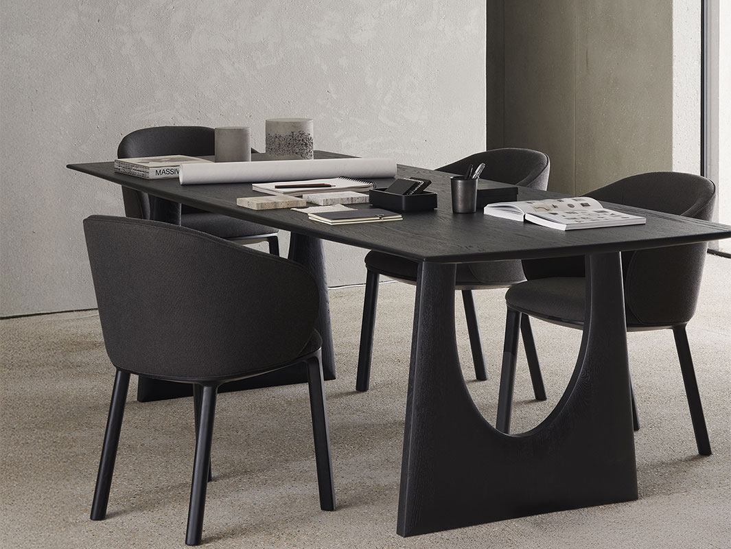 La Mesa Geometric de Ethnicraft representa una expresión contemporánea del diseño funcional aplicado a la madera maciza. Fabricada con robusto roble macizo o teca, esta colección destaca por su base de formas angulares y definidas que evocan una geometría precisa, aportando dinamismo visual sin perder solidez.